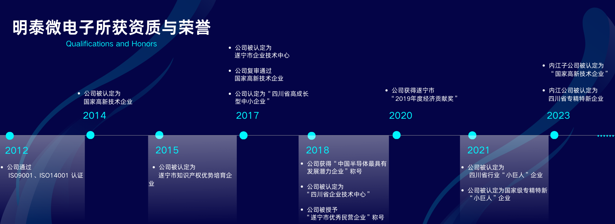 關于明泰明泰微電子是一家從事集成電路和分立器件封裝與測試業(yè)務的國家高新技術企業(yè),是目前成渝經(jīng)濟圈規(guī)模最大的第三方獨立封測服務型制造企業(yè)。主營業(yè)務為集成電路和功率器件的封裝、測試和銷售,是西南地區(qū)規(guī)模最大的獨立第三方代工企業(yè)。公司現(xiàn)有的封裝產品主要包括DIP系列、SOP系列、TO系列、SOT系列、QFN/DFN、LQFP、LGA、PDFN、TOLL等,掌握疊層封裝、多芯片封裝等技術。